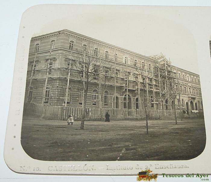 ANTIGUA FOTOGRAFIA ESTEREOSCOPICA DE CASTELLON . Nº 10 EL TURISMO PRACTICO . INSTITUTO DE SEGUNDA ENSEÑANZA - CARTAS COROGRAFICAS DE ESPAÑA . A MARTIN EDITOR - MIDE 17 X 8,2 CMS.