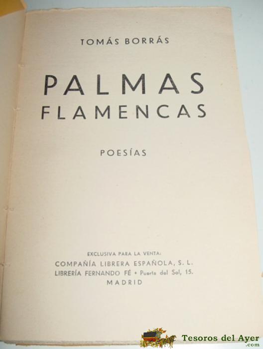 PALMAS FLAMENCAS. POESíAS. BORRáS, TOMáS - FERNANDO FE, MADRID, 1936. CUBIERTAS ORIGINALES. PRIMERA EDICIóN. 8º. 158PP - CON CAMISA, RUSTICA, TAL COMO SE VE EN LAS FOTOS.