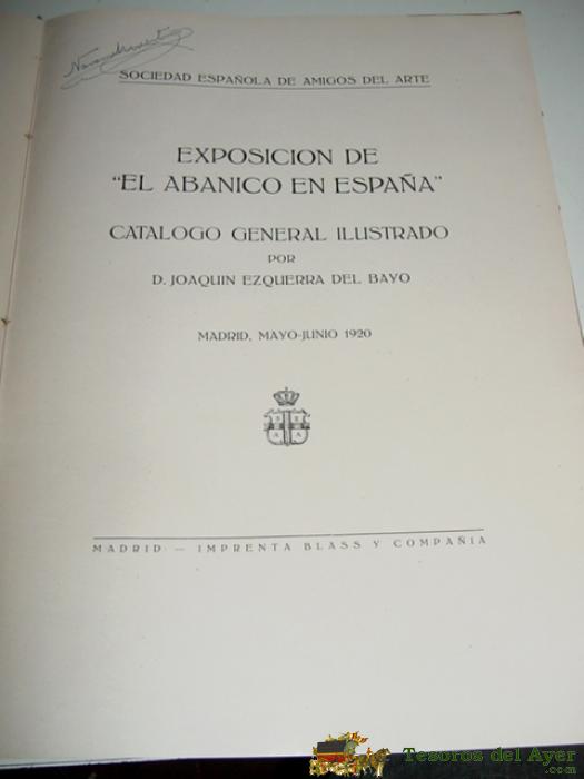 EXPOSICION DE " EL ABANICO EN ESPAñA". EZQUERRA DEL BAYO, JOAQUIN - IMP. BLASS Y CIA 1920. 35,5 X 25,5 CMS. 100 PAGINAS MAS EN HOJAS APARTE LXVII LáMINAS. CATáLOGO GENERAL ILUSTRADO DE LA EXPOSICIóN MAYO- JUNIO, MADRID 1920. SOCIEDAD ESPAñOLA DE AMIGOS DEL ARTE. ENC. MEDIA TELA EDITORIAL - TAL COMO SE VE EN LAS FOTOGRAFIAS PUESTAS. EXCELENTE, EXCEPCIONAL