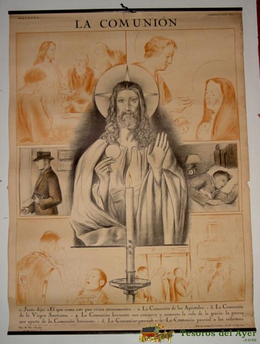 ANTIGUO CARTEL PARA LA ENSEñANZA DEL CATECISMO - AÑOS 30. ENSEñANZA DE LA RELIGION, VIRTUDES, SACRAMENTOS ETC. POR LAS 2 CARAS Y TEXTO. PRESBITERO LAMBERTO FONT - EDICIONES AMIGOS DEL CATECISMO - HIJOS M. BLASI DE BARCELONA - MIDE 50 X 70 CM. APROXIMADAMENTE. BUEN ESTADO, SALVO ALGUNA PEQUEñA RAJITA. MUY RARO. DISPOSICIONES PARA LA BUENA COMUNION Y LA COMUNION. VER LAS DOS FOTOGRAFIAS QUE HEMOS PUESTO DE ESTE CARTEL