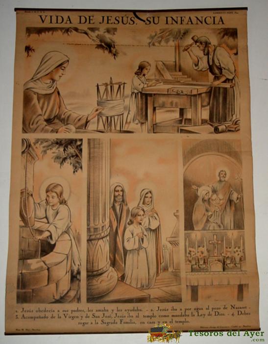 ANTIGUO CARTEL PARA LA ENSEñANZA DEL CATECISMO - AÑOS 30. ENSEñANZA DE LA RELIGION, VIRTUDES, SACRAMENTOS ETC. POR LAS 2 CARAS Y TEXTO. PRESBITERO LAMBERTO FONT - EDICIONES AMIGOS DEL CATECISMO - HIJOS M. BLASI DE BARCELONA - MIDE 50 X 70 CM. APROXIMADAMENTE. BUEN ESTADO, SALVO ALGUNA PEQUEñA RAJITA. MUY RARO - VIDA DE JESUS, SU VIDA PUBLICA, PASION Y MUERTE - SU INFANCIA. VER LAS DOS FOTOGRAFIAS QUE HEMOS PUESTO DE ESTE CARTEL