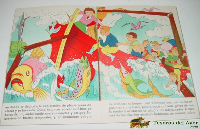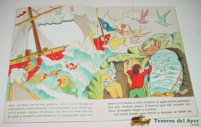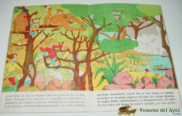 ANTIGUO CUENTO TROQUELADO ROBINSON CRUSOE, EDITORIAL ROMA . COLECCION A TRAVES DE... Nº 3 - 16 PAGINAS MAS CUBIERTAS, MIDE 25 X 17,5 CMS. AÑOS 50 - CON DIORAMAS