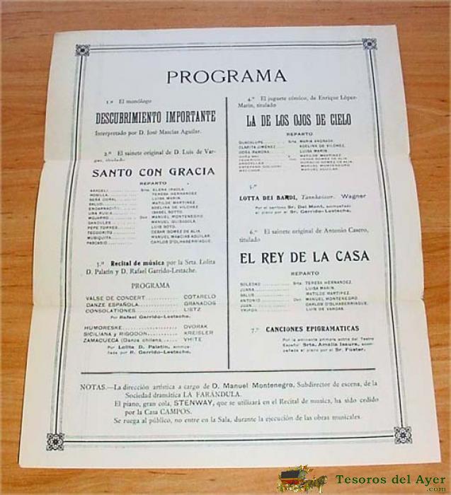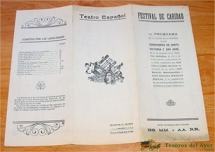 PROGRAMA DEL TEATRO ESPAÑOL. FESTIVAL DE CARIDAD, MADRID, R. VELASCO, 1916 - DESPLEGADO MIDE 22 X 28 CMS.