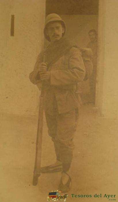 ANTIGUA FOTOGRAFIA DE MILITAR ESPAÑOL - CON CURIOSO CALZADO - MIDE 11,4 X 8,8 CMS.