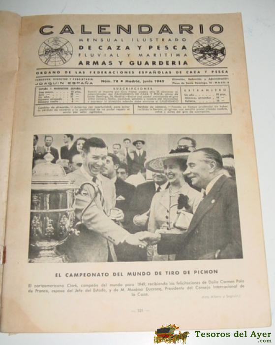 ANTIGUA REVISTA CAZA Y PESCA, CALENDARIO MENSUAL ILUSTRADO, JUNIO 1949, Nº 78 - TIENE 64 PAGINAS, MIDE 28 X 20,5 CMS.