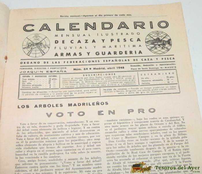 ANTIGUA REVISTA CAZA Y PESCA, CALENDARIO MENSUAL ILUSTRADO, ABRIL 1948, Nº 64 - TIENE 64 PAGINAS, MIDE 28 X 20,5 CMS.