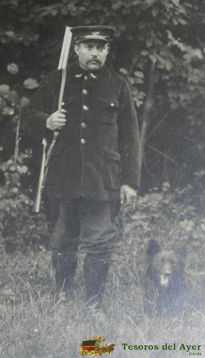ANTIGUA FOTO POSTAL DE GUARDIA JURADO CON ESCOPETA Y PERRO - NO CIRCULADA.