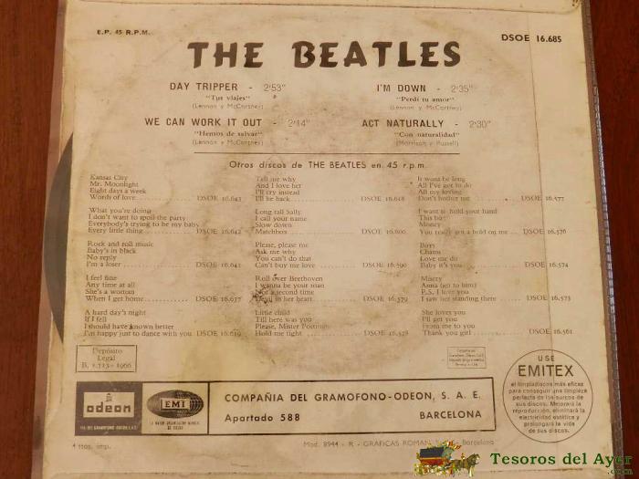 THE BEATLES - DISCO DE VINILO - DAY TRIPPER / I M DOWN / WE CAN WORK IT OUT / ACT NATURALLY - EP 45 RPM - ED. ODEON - EMI ( DSOE 16.685 ) - ESPAÑA 1966.