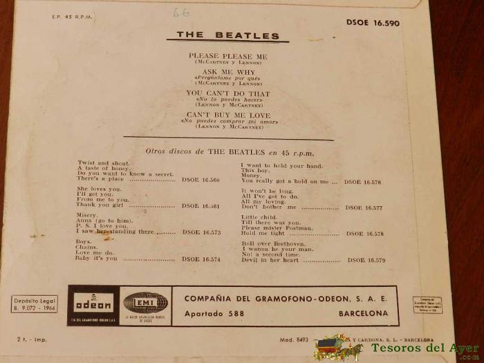 THE BEATLES - ANTIGUO DISCO DE VINILO - THE BEATLES - PLEASE,PLEASE ME + 3 - ORIGINAL ODEON ESPAÑOL 1964 - DSOE 16.590 - E.P. 45 R.P.M.