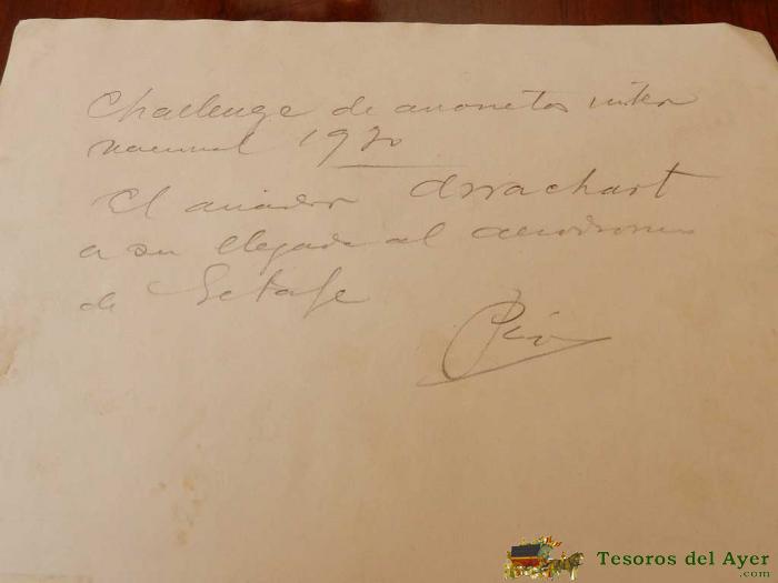 ANTIGUA FOTOGRAFIA DE LUDOVIC ARRACHART EN EL AERODROMO DE GETAFE (MADRID) 1920 - MIDE 18 X 13,5 CMS. - ESQUINA INFERIOR IZQUIERDA PEGADA CON CELO POR EL REVERSO - LA FOTOGRAFIA ESCRITA A LAPICERO POR REVERSO.