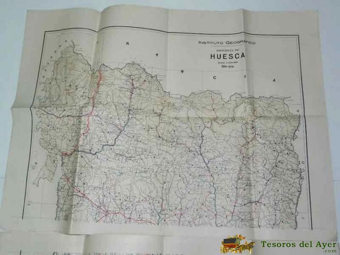 ANTIGUO MAPA GEOGRAFICO DE LA PROVINCIA DE HUESCA - AÑO 1939 - ESCALA 1:200.000 - EN DOS PLIEGOS - MIDE COMPLETO 120 X 82 CMS.