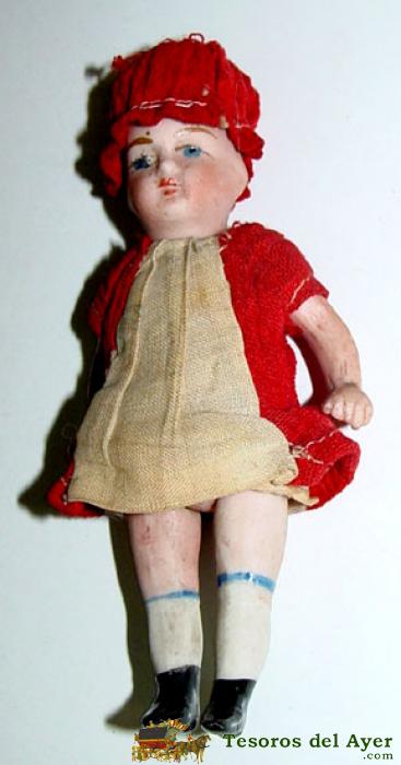MUÑECA DE CABEZA Y CUERPO DE PORCELANA ALEMANIA 1900, SIRVE PARA CASA DE MUÑECAS ROPA DE ORIGEN.