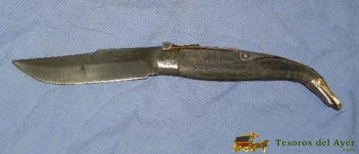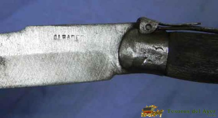 ANTIGUA NAVAJA FABRICADA EN ALBACETE - CACHAS DE ASTA - CON 5 DIENTES DE APERTURA - MIDE ABIERTA 21,5 CMS.