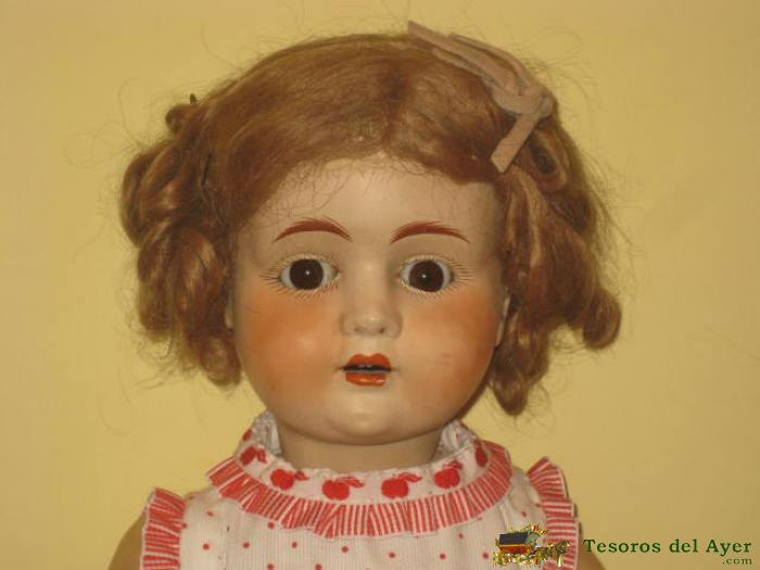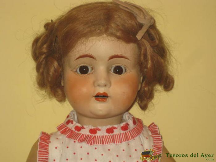 MUÑECA DE COMPOSICIÓN AÑOS 30- INDUSTRIAS CABELLO ORELLANA BARCELONA- - MUY BONITA PELUCA DE MOHAIR, OJO DURMIENTE DE CRISTAL COLOR MIEL.
