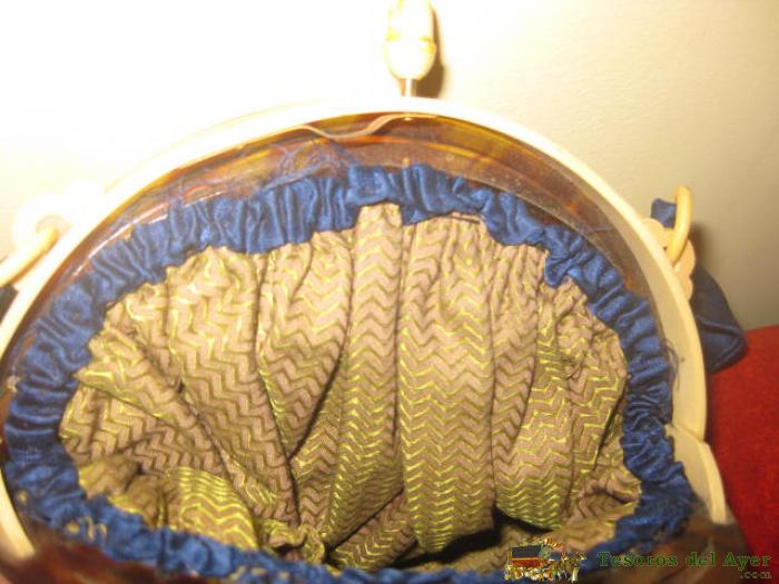 BOLSO DE SEDA CON EMBOCADURA DE CAREY Y FORRO DE SEDA -AÑOS 20.