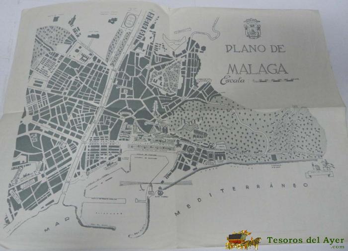 ANTIGUO PLANO DE MALAGA, EDITADO POR LA JUNTA PROVINCIAL DE INFORMACION TURISMO Y EDUCACION POPULAR DE MALAGA, AñOS 50 - MIDE DESPLEGADO 43 X 32 CMS.