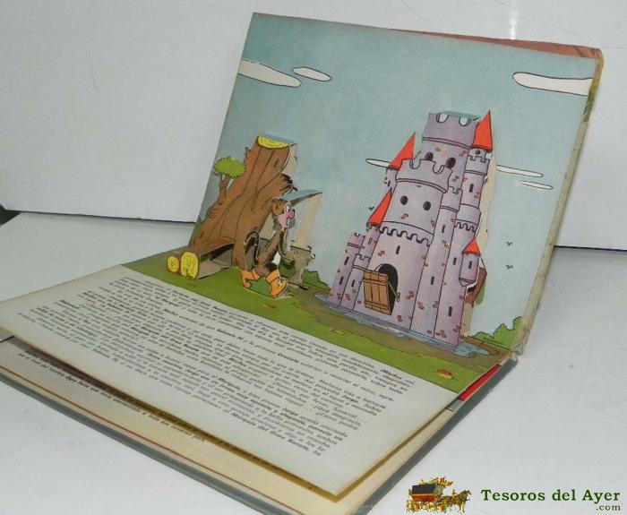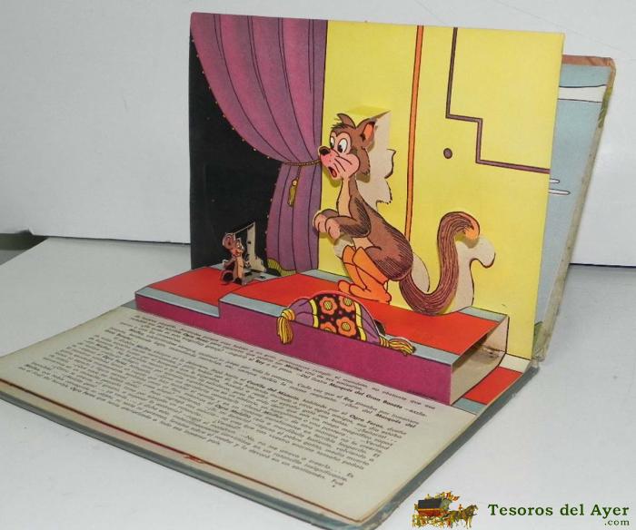 ANTIGUO CUENTO JUGUETE EL GATO CON BOTAS, CARLOS PERRAULT, EDICIONES RELIEVE, 1951 - TIENE 4 DIORAMAS EN 3 DIMENSIONES, MIDE 24,5 X 17,5 CMS.