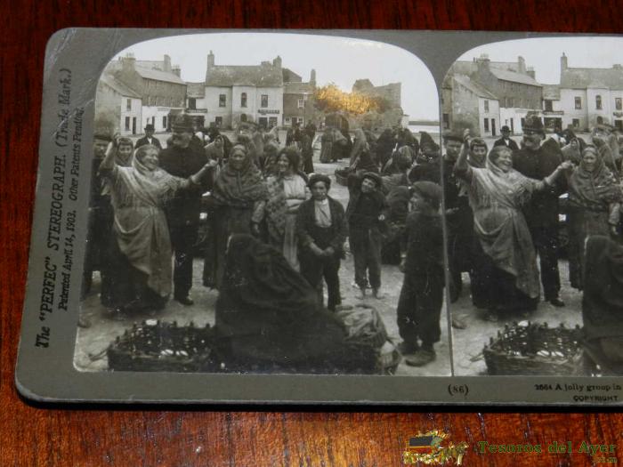 ANTIGUA FOTOGRAFIA ESTEREOSCOPICA DE GRUPO DE PERSONAS EN LA PLAZA DEL MERCADO DE GALWAY, IRLANDA, MIDE 17,5 X 9 CMS. ED. H.C. WHITE.