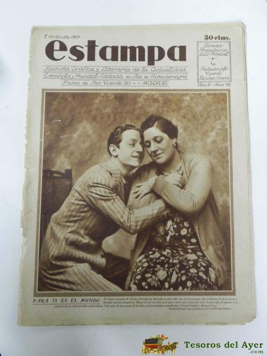 ANTIGUA REVISTA ESTAMPA - 5 NOVIEMBRE 1929, NUM. 95, FABRICANDO TRILLOS, MILLAN ASTRAY EN EL CAMPAMENTO DE DAR RIFFIEN, 40 PAG. MIDE 37 X 28 CMS.