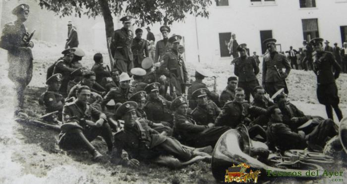 ANTIGUA FOTOGRAFIA DE LA BANDA DE LA LEGION PORTUARIA DE GENOVA, ITALIA, AñOS 1930, MIDE 17,8 X 12,5 CMS.