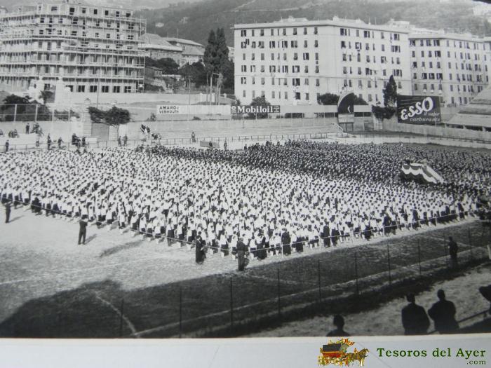 ANTIGUA FOTOGRAFIA DE LA BANDA DE LA LEGION PORTUARIA DE GENOVA, ITALIA, EN ACTO EN CAMPO DE FUTBOL, AñOS 1930, MIDE 23 X 17 CMS.