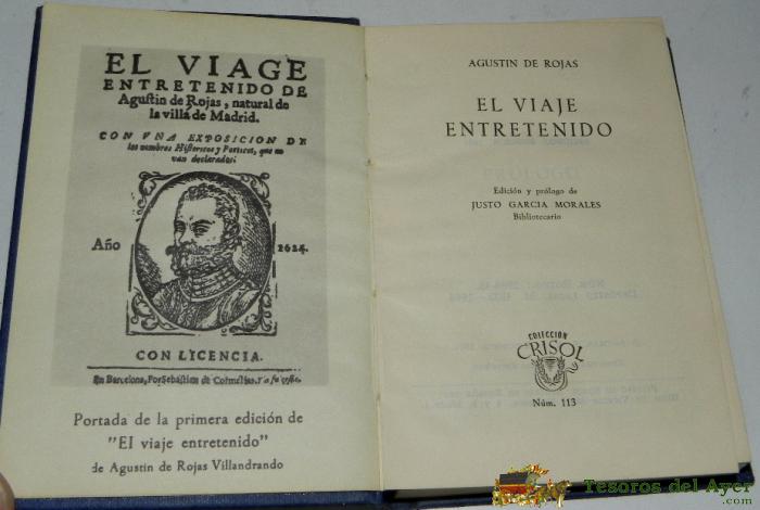 CRISOL ED. AGUILAR, N. 113, POR AGUSTIN DE ROJAS, EL VIAJE ENTRETENIDO, ENCUADERNACIóN EN TELA AZUL, PAPEL BIBLIA. SEGUNDA EDICIóN 1964.