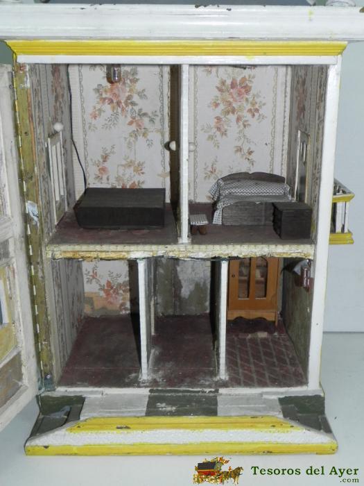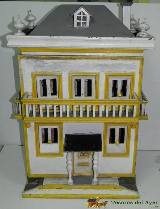 ANTIGUA CASA DE MUÑECAS DE MADERA, AÑOS 30, TAL COMO SE VE EN LAS FOTOGRAFIAS PUESTAS, MIDE 74 X 48 X 38 CMS.