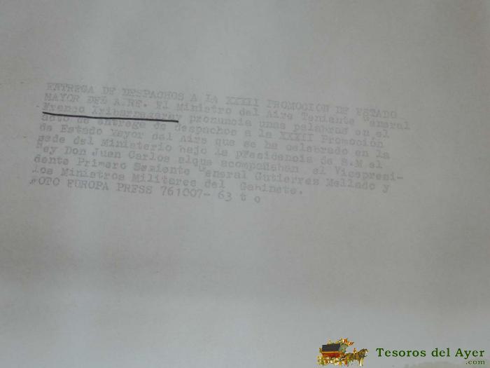 ANTIGUA FOTOGRAFIA, MINISTRO DE AIRE TENIENTE GENERAL FRANCO IRIBERNEGARAY, ENTREGA DE DESPACHOS A LA XXXII PROMOCION DE ESTADO MAYOR DEL AIRE, BAJO LA PRESIDENCIA DE SU MAJESTAD EL REY DON JUAN CARLOS, MIDE 24,1 X 18 CMS