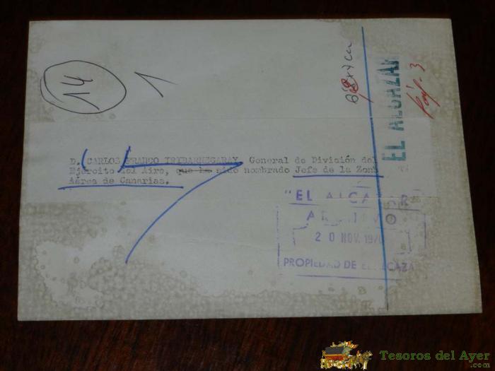 ANTIGUA FOTOGRAFIA, DON CARLOS FRANCO IRIBARNEGARAY, GENERAL DE DIVISION DEL EJERCITO DEL AIRE, MIDE 12,8 X 17,7 CMS
