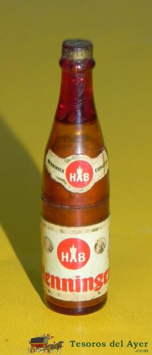 ANTIGUO MECHERO O ENCENDEDOR DE GASOLINA, CERVEZA HB HENNINGER, CON FORMA DE BOTELLA DE CERVEZA, MIDE 7 CMS.