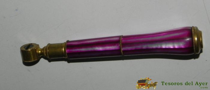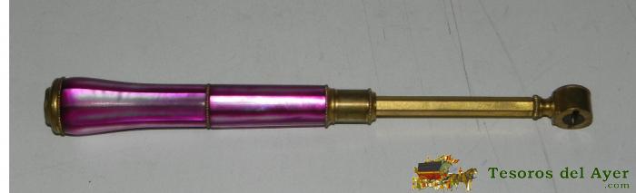 ANTIGUO BRAZO TELESCOPICO DE ANTEOJOS O PRISMATICOS DE TEATRO O OPERA, DE NACAR Y BRONCE, MIDEN ABIERTOS 22 CMS. DE LONGITUD Y CERRADOS 14 CMS. PRECIOSO.