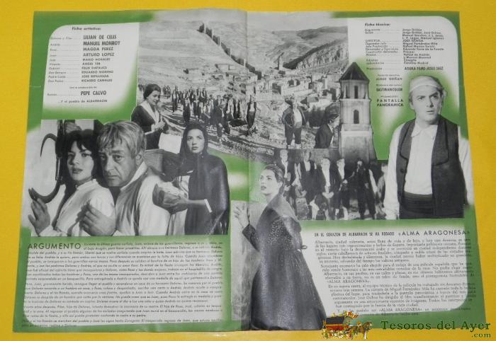 ANTIGUA GUIA DEL FILM ALMA ARAGONESA , CON LILIAN DE CELIS Y MANUEL MONROY, GUIA 4 HOJAS AL DESPLEGARLA SE HACE UN AFFICHE, MIDE CERRADA 32 X 22 CMS.