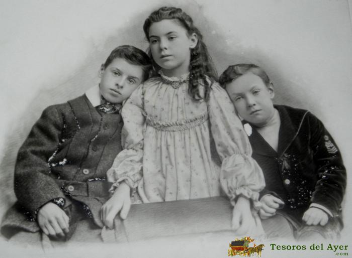 ANTIGUA Y RARISIMA FOTOGRAFIA DE NIÑOS SOBRE OPALINA, FIRMADA POR G.E. WALES, MIDE 38 X 30,5 CMS.