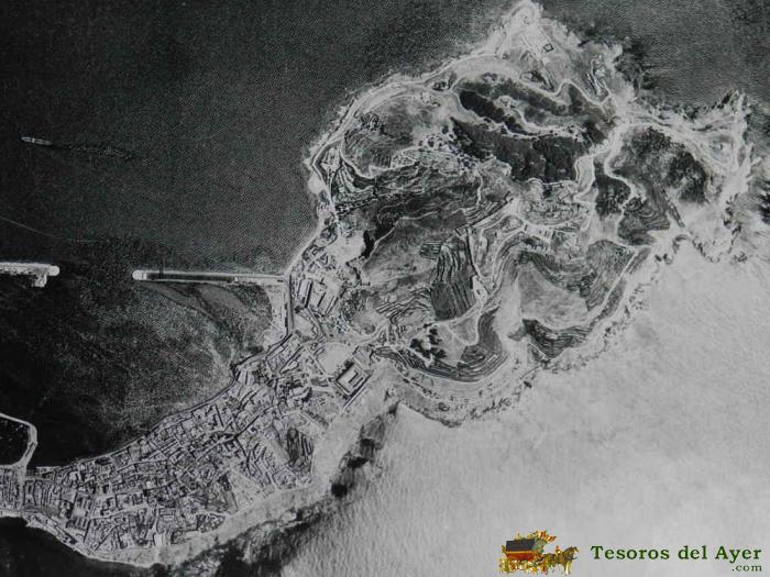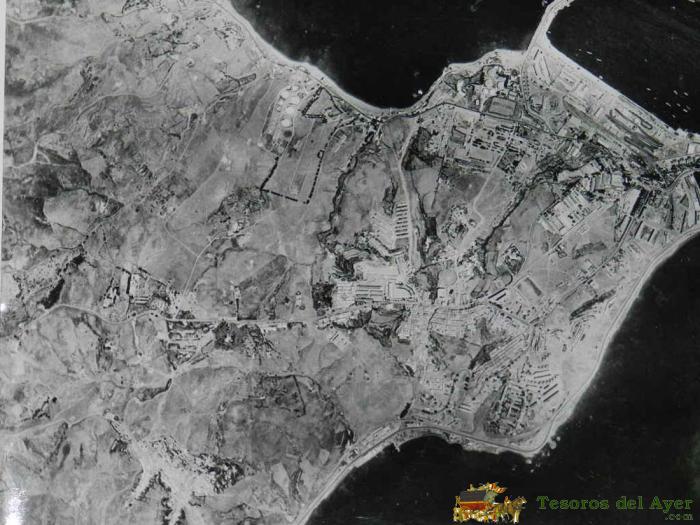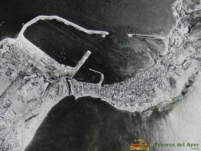 ANTIGUA Y EXCEPCIONAL FOTOGRAFIA AEREA GIGANTE DE CEUTA, ORIGINAL, MIDE 60 X 50 CMS., FECHADA EN 30 DE JUNO DE 1955.