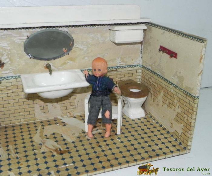 ANTIGUO CUARTO DE BAñO, EN MADERA Y CERáMICA. PRINCIPIOS S. XX, MIDE 33 X 17 X 20 CMS., CON ALGUN LIGERO DESPERFECTO TAL Y COMO SE VE EN LAS FOTOGRAFIAS.