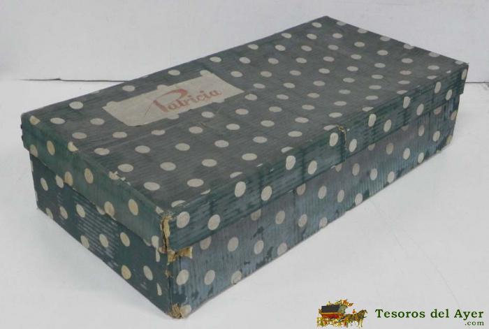 ANTIGUA CAJA DE CARTON DE LA MUÑECA ESPAÑOLA, PATRICIA DE FLORIDO, EPOCA MARIQUITA PÉREZ, BUEN ESTADO, ESQUINAS LIGERAMENTE ROZADAS, MIDE 52 X 24 X 12 CMS.