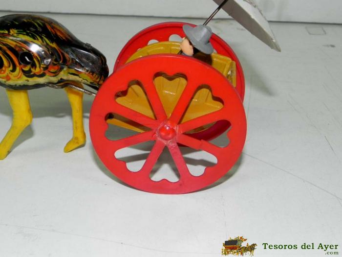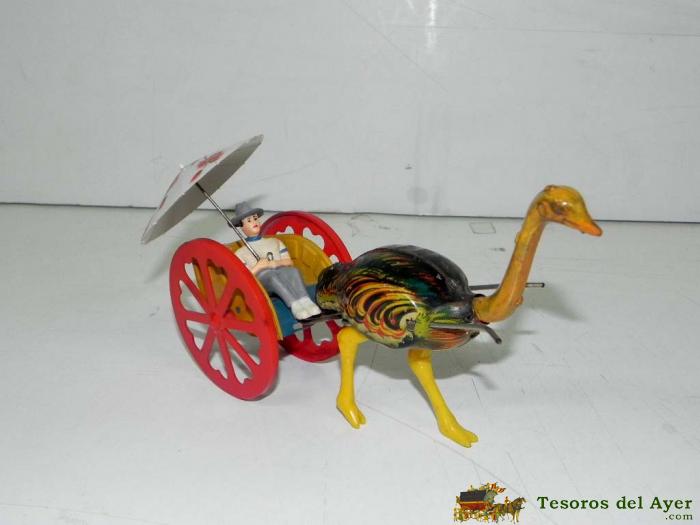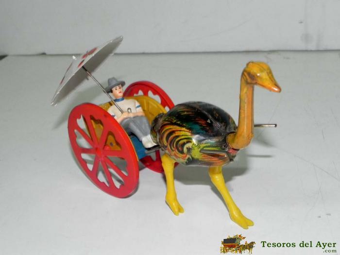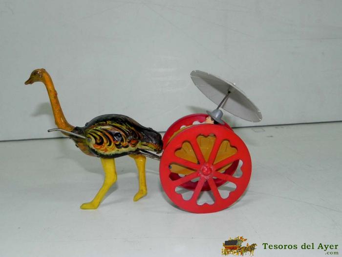 ANTIGUO CARRITO CON HOMBRE TIRADO POR AVESTRUZ DE JYE JYESA . ESTA FABRICADO EN PLASTICO DURO, YT CHAPA LITOGRAFIADA .MIDE 22 CMS. DE LONGITUD, BUEN ESTADO DE CONSERVACION, AUNQUE TIENE EL DEFECTO DE QUE UNA DE LAS RUEDAS ROJAS ESTA RESTAURADA Y PEGADA. F