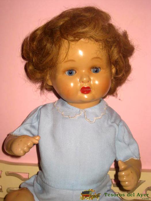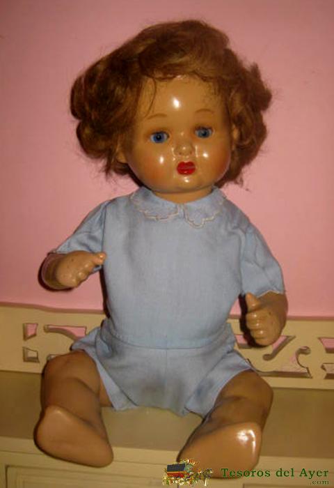 MUY BONITO MUÑECO JUANIN BABY LUJO DE LOS AÑOS 40, CON SU TRAJECITO DE VILLELA CON FESTONES BORDADOS EN CUELLO Y MANGAS. DE CONSERVACIÓN.