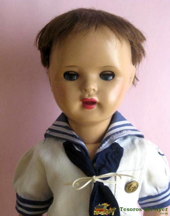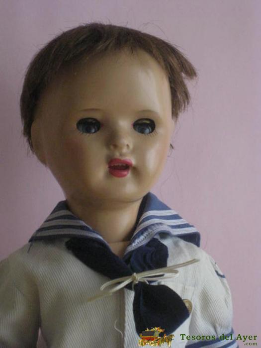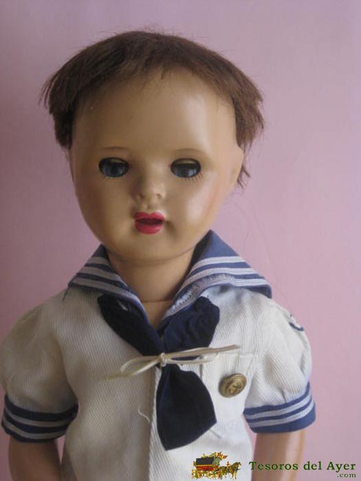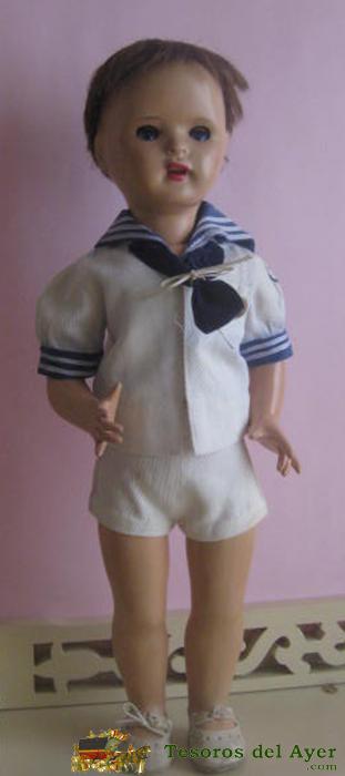 MONÍSIMO JUANIN CADETE DE FINALES DE LOS 50, ÚLTIMOS MODELOS DE CARTÓN PIEDRA, OJO FLIRTY COLOR AZUL. LA PELUCA ESTÁ BIEN, EN LA FOTO NO HA SALIDO MUY FAVORECIDO, PERO ES MONÍSIMO.