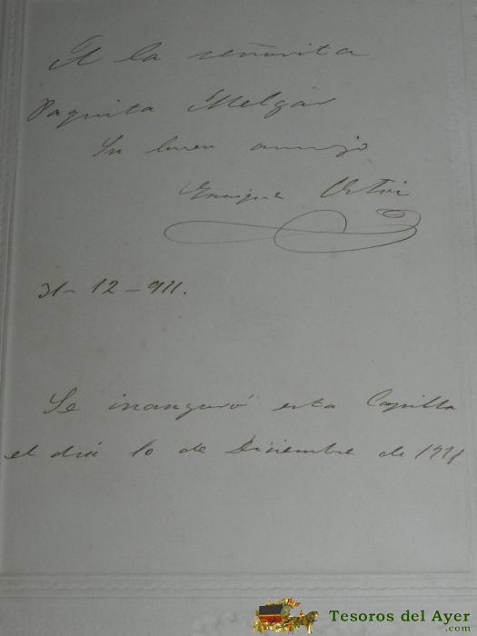 ANTIGUA FOTOGRAFIA DE CAPILLA DEL HOSPITAL DEL CABAÑAL (CABANYAL), VALENCIA - INAGURADA EN 1911, CON DEDICATORIA POR EL REVERSO A PAQUITA MELGAR, ENFERMERA DE ESTE HOSPITAL - EN 1909 RECIéN TERMINADAS LAS OBRAS, SE UTILIZó COMO HOSPITAL DE LA CRUZ ROJA DURANTE LA GUERRA DE ÁFRICA - MIDE 26 X 21 CMS. INCLUIDO EL PASPARTOUT - EXCEPCIONAL Y RARISIMA FOTOGRAFIA.