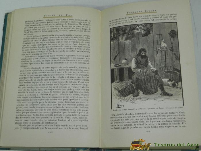 ANTIGUO LIBRO DE ROBINSON CRUSOE, ED. SATURNINO CALLEJA, BIBLIOTECA PERLA, PRIMERA SERIE III, 285 PAG. ILUSTRACIONES DE PICOLO, LOMO UN POCO ROZADO.