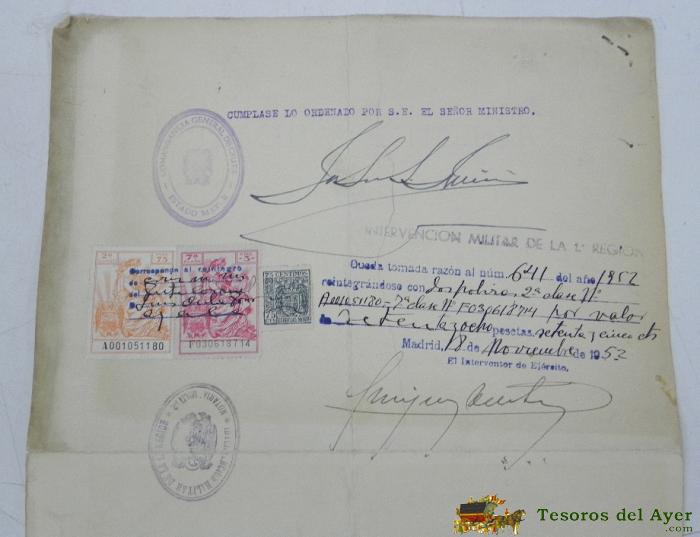 ANTIGUA CONCESION A UN TENIENTE CORONEL DE INGENIEROS DE FECHA 7 DE ABRIL DE 1952, DE LA CRUZ DE SEGUNDA CLASE DEL MERITO MILITAR CON DISTINTIVO BLANCO, CON LA FIRMAS DE EL GENERAL MUÑOZ GRANDES, TAL COMOSE VE EN LA FOTO PUESTA.