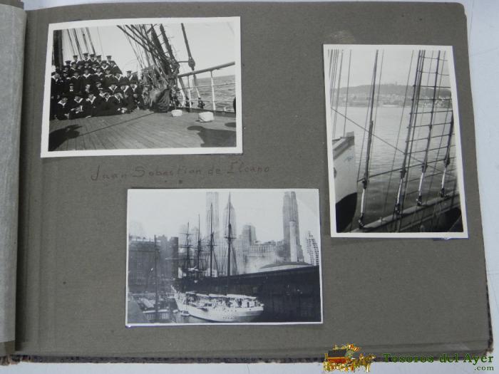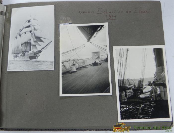 ANTIGUO ALBUM FOTOGRAFICO DE MARINA, BARCO, FOTOGRAFIAS DEL BARCO JUAN SEBASTIAN ELCANO AÑO 1941, FOTOGRAFIAS DE PALMA DE MALLORCA, FOTOGRAFIA DEL ACORAZADO ROYAL OAK, CADIZ, SAN FERNANDO.