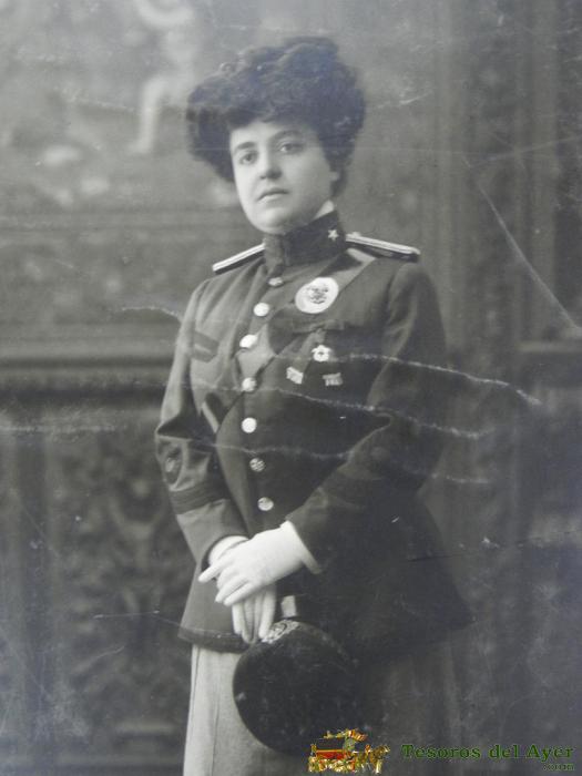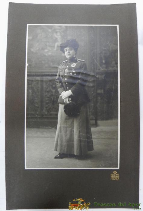 ANTIGUA FOTOGRAFIA DE ENFERMERA DE LA CRUZ ROJA PAQUITA MELGAR QUE REALIZO SU LABOR EN EL HOSPITAL DE CABAÑAL (CABANYAL), VALENCIA - FOTO NOVELLA, PHOTO-ART, ENFERMERA QUE RECIBIRIA LA CRUZ DE PRIMERA CLASE DEL MéRITO MILITAR, CONCEDIDA POR SUS TRABAJOS EN CAMPAñA, VALENCIA - EN 1909 RECIéN TERMINADAS LAS OBRAS, SE UTILIZó COMO HOSPITAL DE LA CRUZ ROJA DURANTE LA GUERRA DE ÁFRICA - AÑO 1910 APROX. - MIDE 56 X 35,5 CMS. INCLUIDO EL PASPARTOUT - EXCEPCIONAL Y RARISIMA FOTOGRAFIA.