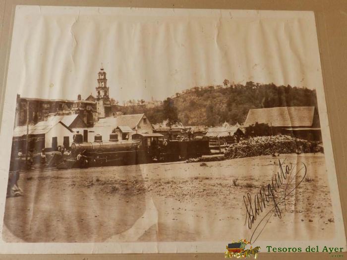 ANTIGUA FOTOGRAFIA DE AMECAMECA 1904 MEXICO, FERROCARRIL, LOCOMOTORA Y CATEDRAL, FOTOGRAFIA DE ISIDRO GONZALEZ, MUY GRANDE MIDE 34,5 X 27 CMS. EXCEPCIONAL Y MUY RARA. 1904 OLD MEXICO AMECAMECA PHOTOGRAPHY, RAILWAY, LOCOMOTIVE AND CATHEDRAL, ISIDRO GONZALEZ PHOTOGRAPHY, VERY LARGE MEASURE 34.5 X 27 CMS. OUTSTANDING AND VERY RARE.