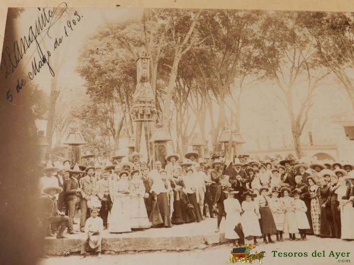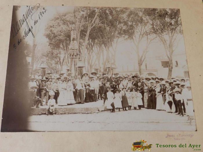 ANTIGUA FOTOGRAFIA ALBUMINA DE MEXICO 1903 DIA 5 DE MAYO DE 1903 FIESTA CONCENTRACION EN PLAZO CON UNA FUENTE MUY BONITA, NO CONOCEMOS LA CIUDAD, AUNQUE POR LA PARTE POSTERIOR PONE ALGO PARECIDO A TALUMILCO, MUY GRANDE MIDE 32,5 X 25,5 CMS. INCLUIDO EL PASPARTOUT, EXCEPCIONAL Y MUY RARA. JESUS ROMERO FUE EL FOTOGRAFO. OLD PHOTOGRAPH OF MEXICO 1903 ALBUMIN 5 MAY DAY FESTIVAL 1903 CONCENTRATION IN TIME WITH A POWER VERY NICE, DO NOT KNOW THE CITY, BUT PUT BACK FOR SOMETHING LIKE TALUMILCO, VERY LARGE MEASURE 32.5 X 25.5 CMS. INCLUDING TOUT, SPECIAL AND VERY RARE. ROMERO JESUS WAS THE PHOTOGRAPHER.