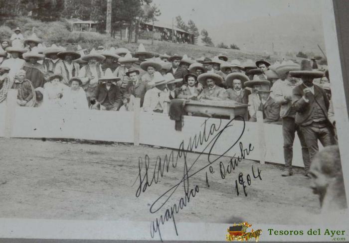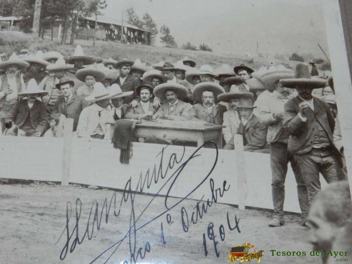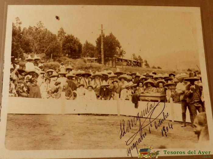 ANTIGUA FOTOGRAFIA DE APAPASCO 1904 (CUAUTINCHAN) MEXICO, FIESTAS PELEA DE GALLOS, FIRMADA POR S.S. ANGUITA EL 1 DE OCTUBRE DE 1904, MUY GRANDE MIDE 31,5 X 27 CMS. EXCEPCIONAL Y MUY RARA. FOTOGRAFIA DE ISIDRO GONZALEZ, AMECAMECA, E. DE M. - D. DE CH. - OLD PHOTOGRAPH OF APAPASCO 1904 (CUAUTINCHáN) MEXICO, PARTY COCKFIGHT, SIGNED BY SS ANGUITA OCTOBER 1ST 1904 VERY LARGE MEASURE 31.5 X 27 CMS. OUTSTANDING AND VERY RARE. PHOTOGRAPHY ISIDRO GONZALEZ, AMECAMECA, E. OF M. - D. DE CH.