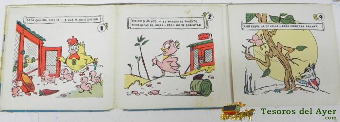 ANTIGUO CUENTO EL POLLITO QUE NO QUERIA IRSE A DORMIR, COLECCION NO QUERIA Nº 4, AñO 1944. PRECIOSO CUENTO DESPLEGABLE CON DIEZ PAGINAS DESPLEGABLES, PARA CHIQUITINES QUE NO SABEN LEER. LOMO CON DEPERFECTOS.