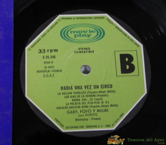 ANTIGUO DISCO DE VINILO LP - HABIA UNA VEZ UN CIRCO - GABY FOFO Y MILIKI - CON FOFITO - AÑO 1973 - EN BUEN ESTADO.
