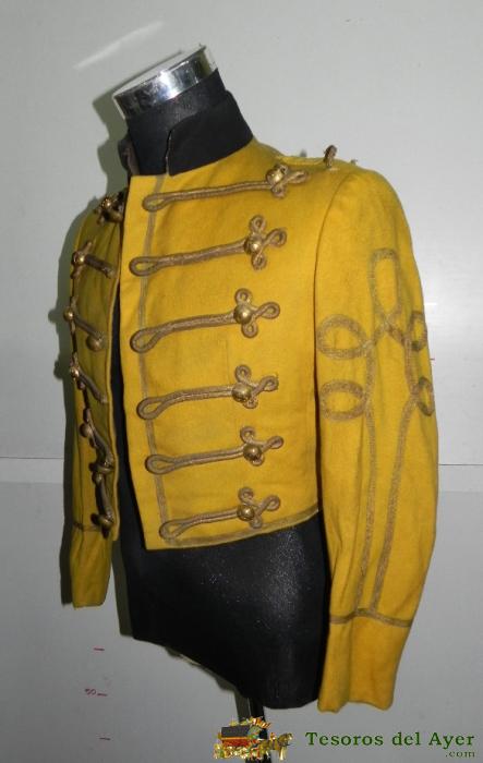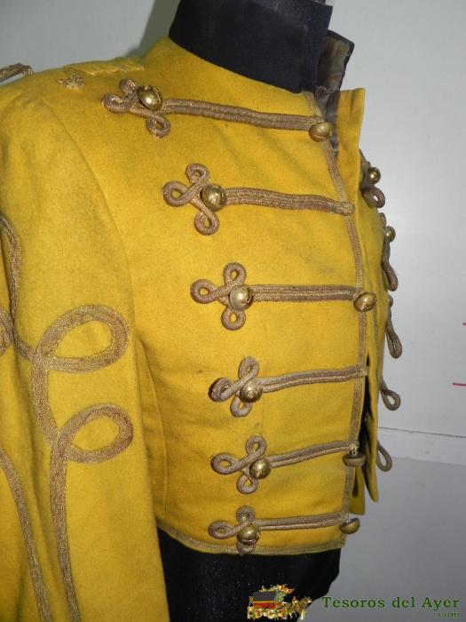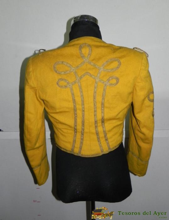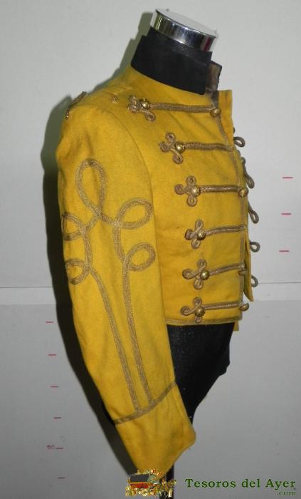 ANTIGUA CHAQUETA DE DOMADOR DE CIRCO, AÑOS 20, DE HUSAR, BUEN ESTADO DE CONSERVACION TAL COMO SE PUEDE VER EN LAS FOTOS PUESTAS. MIDE 44 CMS. DE HOMBROS. LE FALTA ALGUN BOTON, QUE PUEDE SER REPUESTO CON OTROS SIMILARES.